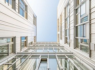 Like all new buildings as part of the Berlin school construction offensive, this building is also certified to the silver standard of the Bewertungssystem Nachhaltiges Bauen (BNB). The building itself is constructed as a concrete skeleton structure and clad with a prefabricated façade.